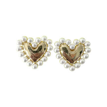 These gold heart stud earrings are adorned with delicate pearls for a look that blends elegance and charm. Timeless and feminine, they transition effortlessly from day to night.