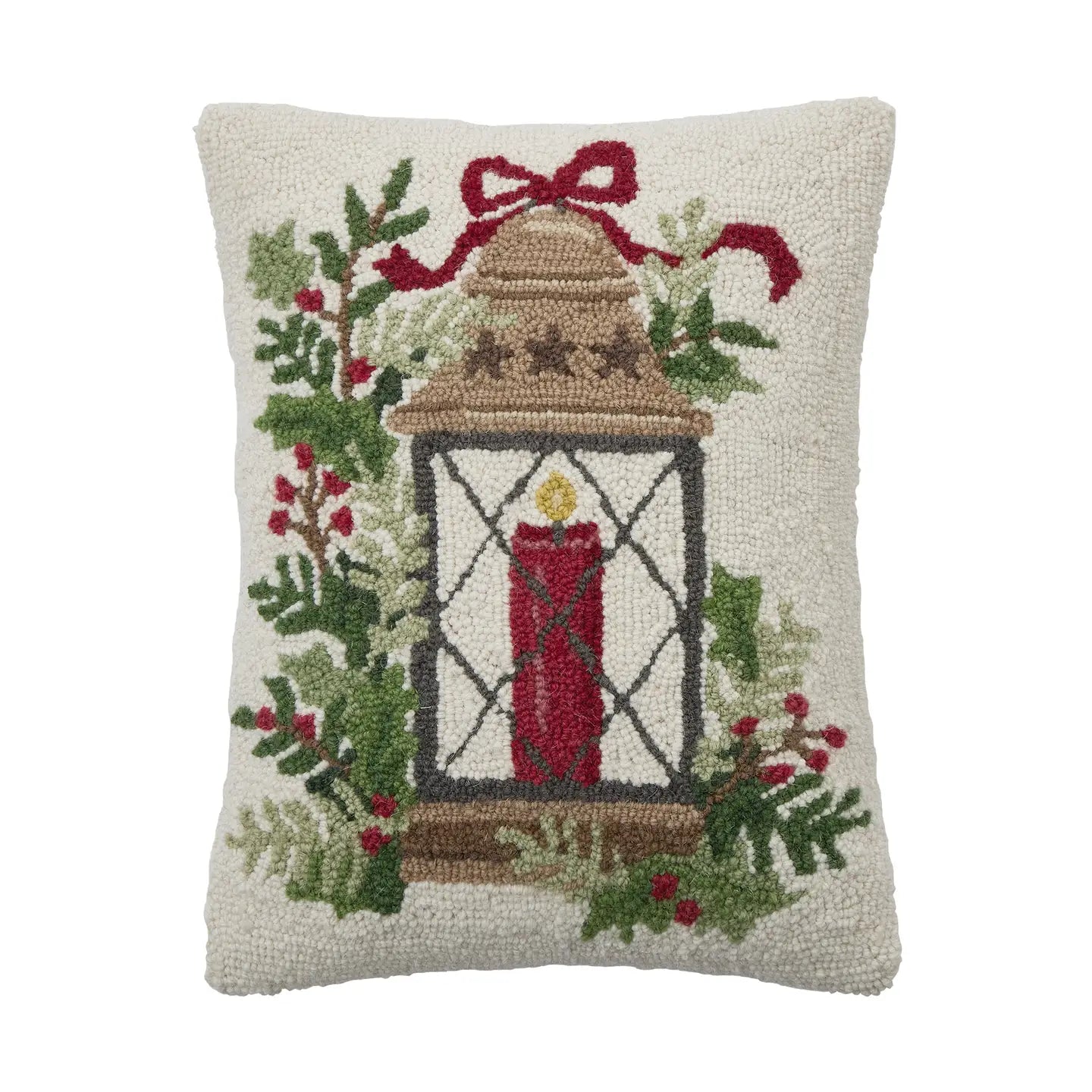 Brighten your seasonal décor with this holiday lantern pillow, featuring a glowing red candle framed by festive greenery and a classic bow. Its warm, traditional design makes it an inviting accent for sofas, chairs, or entryway benches throughout the Christmas season.