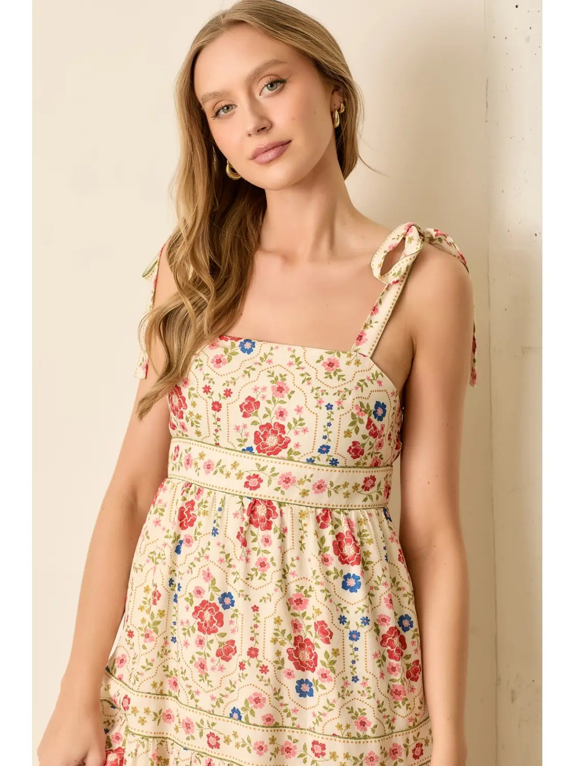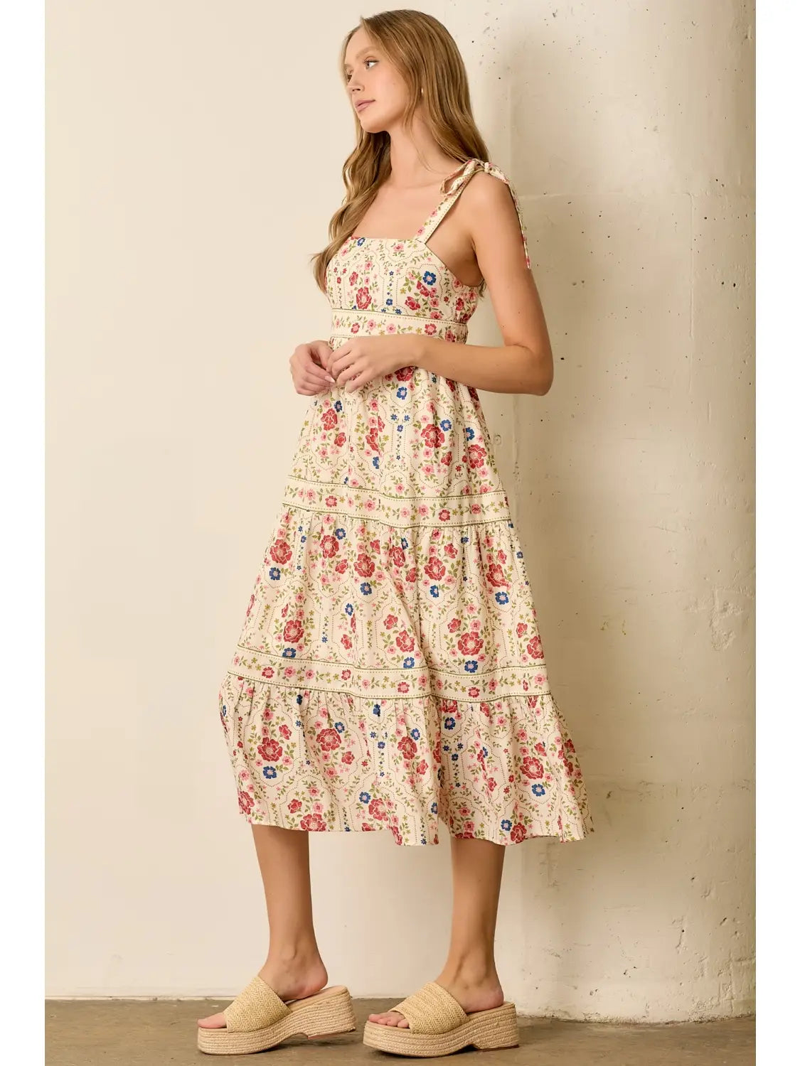 Easy, feminine, and made for warm-weather days, this floral maxi dress brings a fresh take on everyday western style. Designed with adjustable shoulder ties and a clean square neckline, it features a softly structured bodice that flows into a tiered skirt with subtle pattern shifts at each tier for added dimension. The lightweight fabric drapes effortlessly, offering a relaxed, flattering fit that moves with you. Style it with sandals for a casual brunch with friends, or add booties and a denim jacket for an easy western-inspired look that works all spring and summer long.