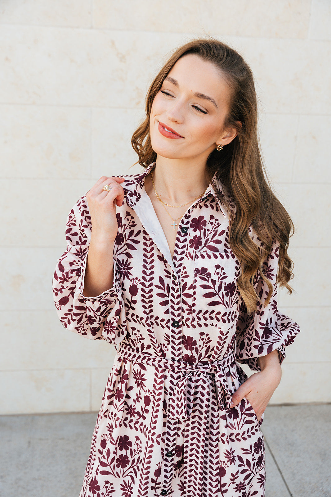 Billowy balloon sleeves, a collared neckline, and a flowing skirt give this dress a polished yet playful edge. Style it with booties and a denim jacket for Texas A&M game day, or swap in strappy heels and delicate jewelry for a chic brunch outfit.