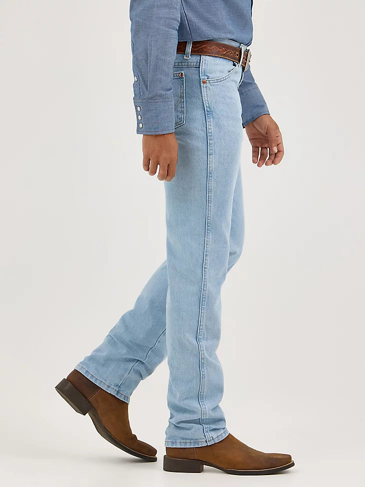 Wrangler® Cowboy Cut® jeans are a tried-and-true wardrobe staple for cowboys who demand a lot from their everyday clothes. What makes the 0936 jean a must-have for every modern cowboy is its slim silhouette through the seat, thigh, and knee. Whether dressed up for a special occasion or dressed down for a backyard barbecue, these men's Cowboy Cut® Wrangler jeans will keep you comfortable all day long without compromising style.