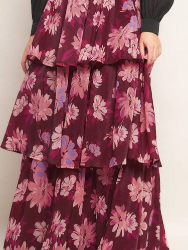 Blossom & Bordeaux Tiered Skirt