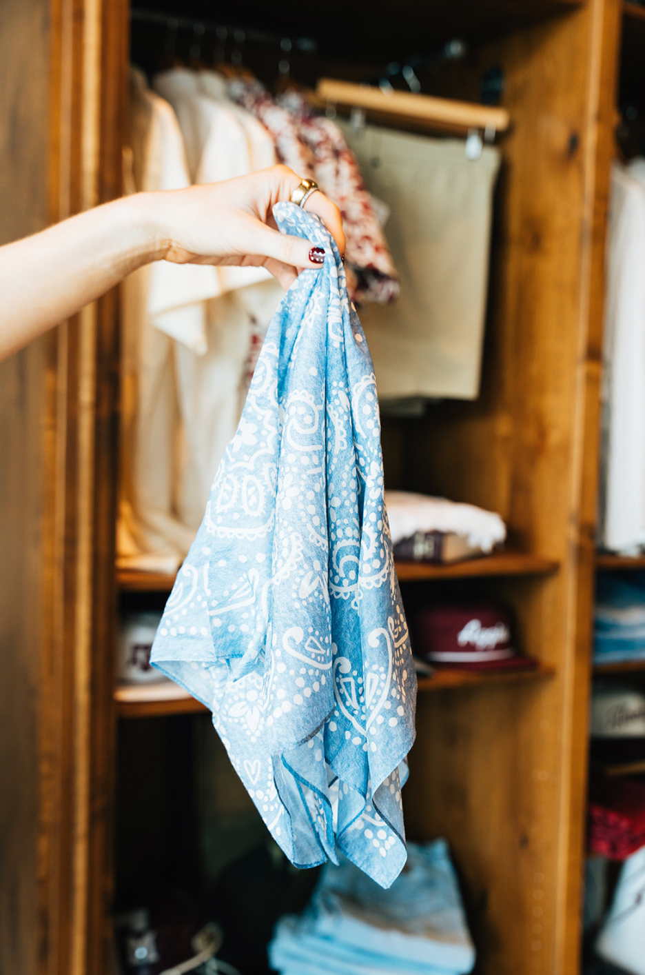 The Cowboy Blues Scarf features an intricate bandana-inspired pattern with detailed florals and classic paisley elements set against a soft, dusty blue backdrop. A thoughtfully framed border gives it a polished finish, making the design feel balanced and refined. The muted blue tone reads as an elevated neutral—easy to pair with denim, whites, and everyday staples. Wear it around your neck, in your hair, or tied onto your favorite handbag for a timeless western touch.