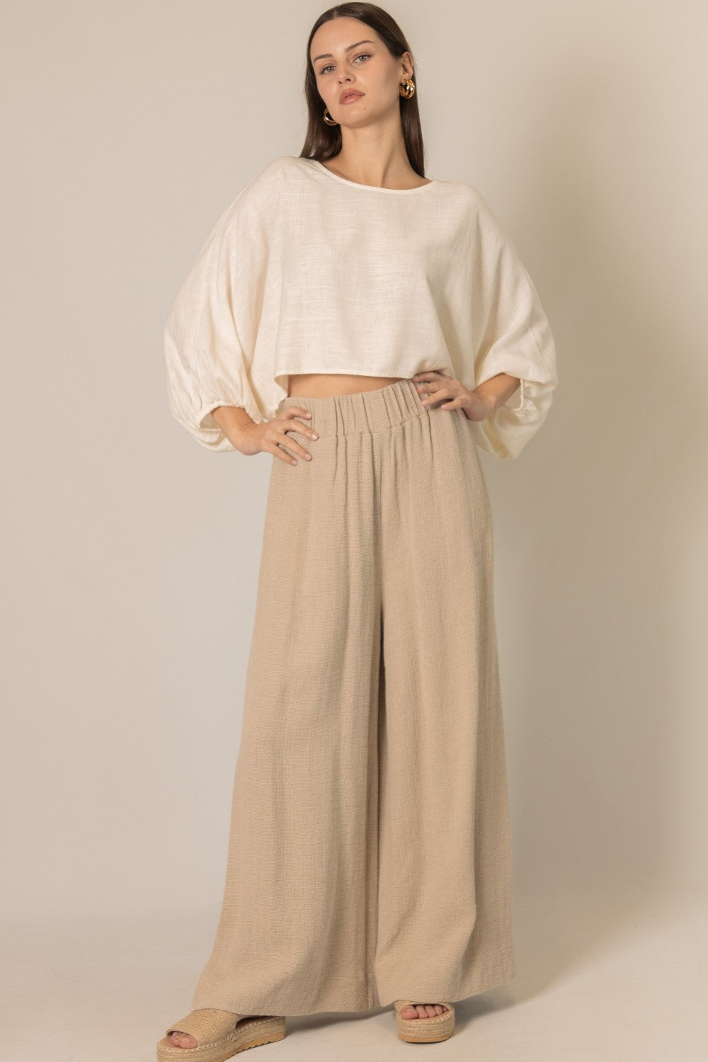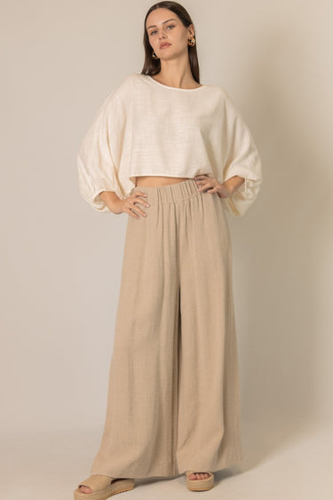 The Cropped Linen Top blends easy style with modern ease. Made from breathable, natural linen, it’s lightweight yet substantial enough to carry you through cooler weather layering. The cropped silhouette gives it a polished edge, while the puff sleeves add just the right amount of softness and shape.