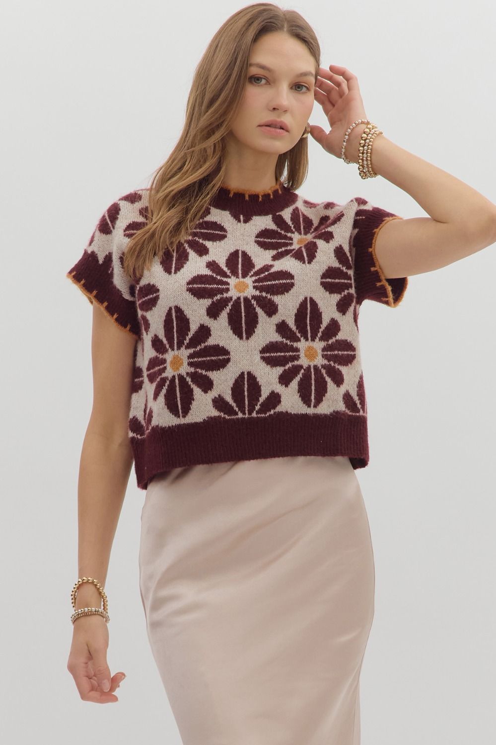 The Petal Sweater is a standout for Aggie gamedays and crisp fall weekends. Its cropped cut and contrast ribbed hem add a tailored edge that flatters whether you’re pairing it with a silky skirt and boots for a western-chic vibe or slipping into denim and sneakers for a laid-back look. The bold, retro-inspired maroon floral design is both unique and playful, bringing Texas pride and effortless style to your cooler-weather wardrobe.